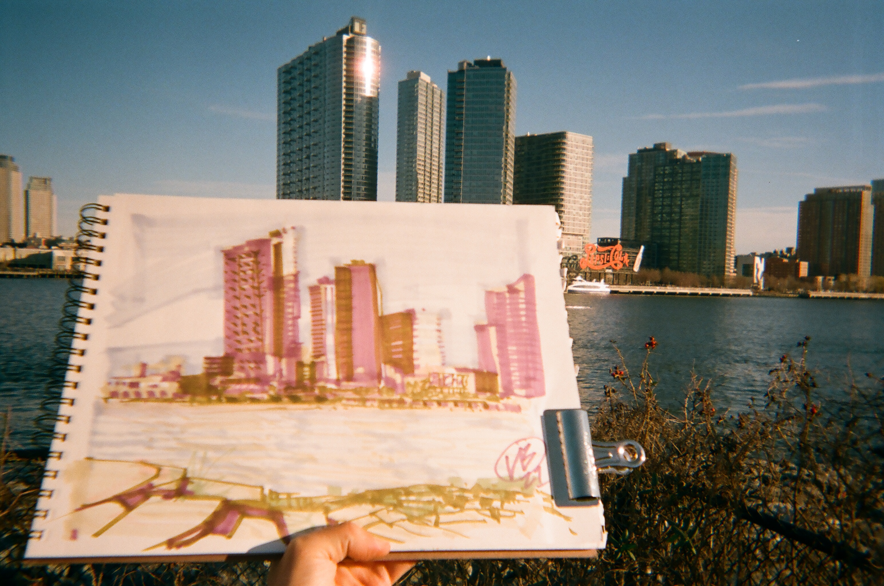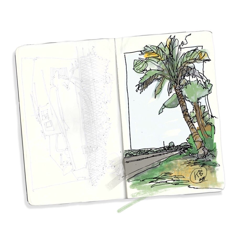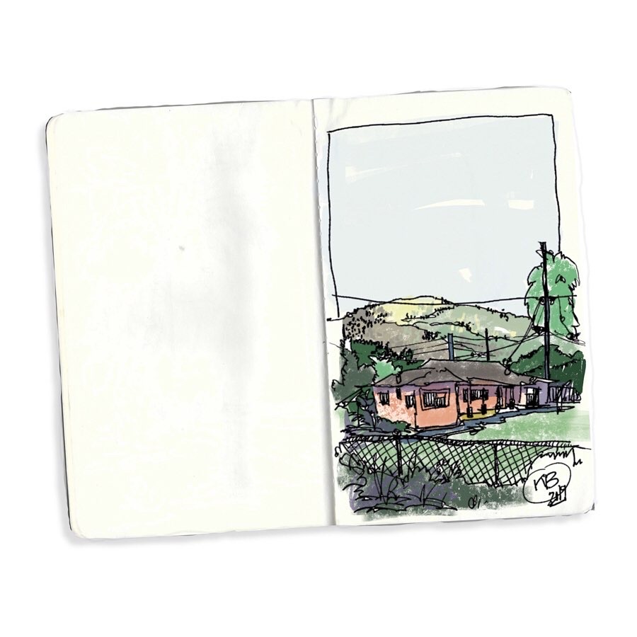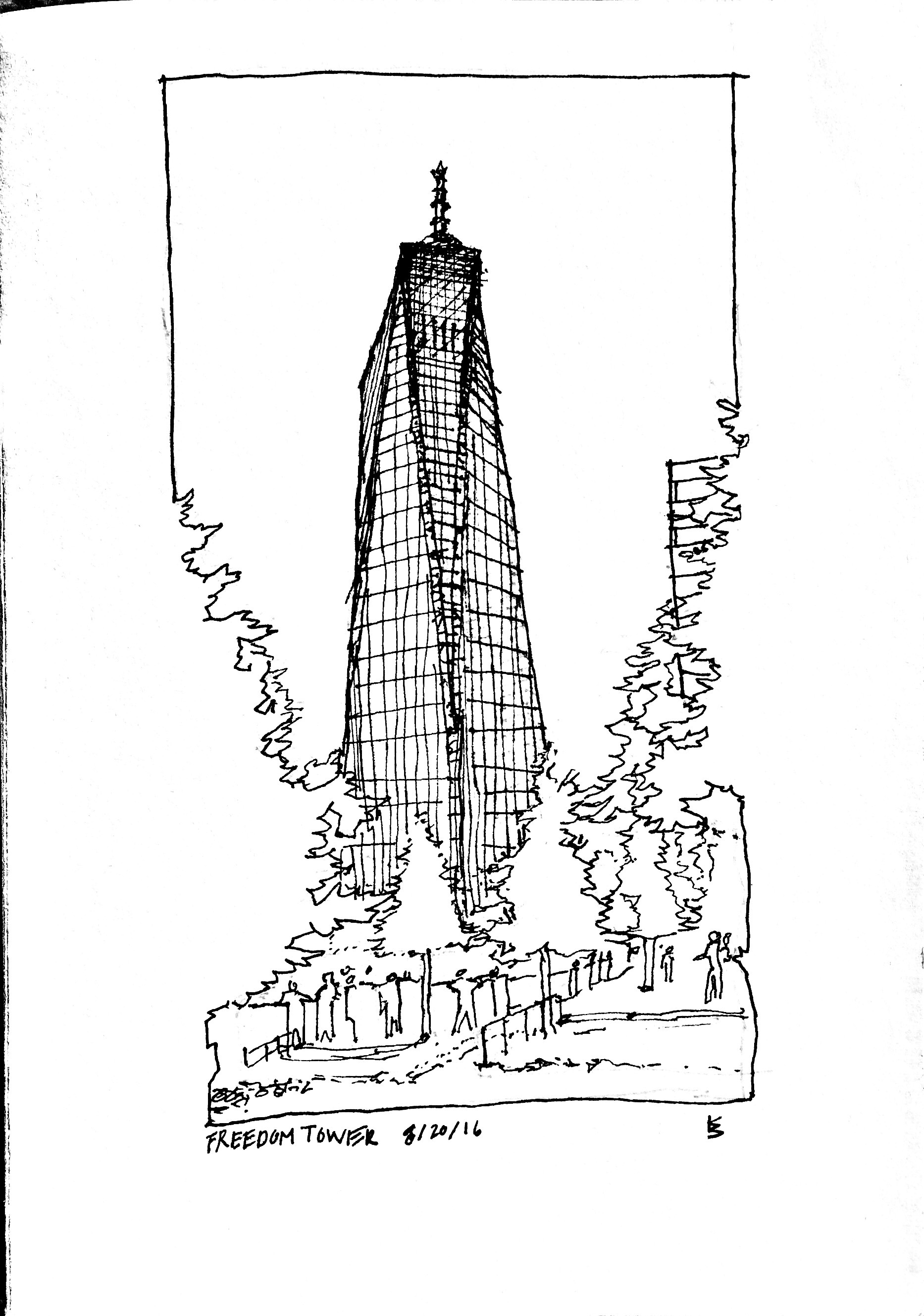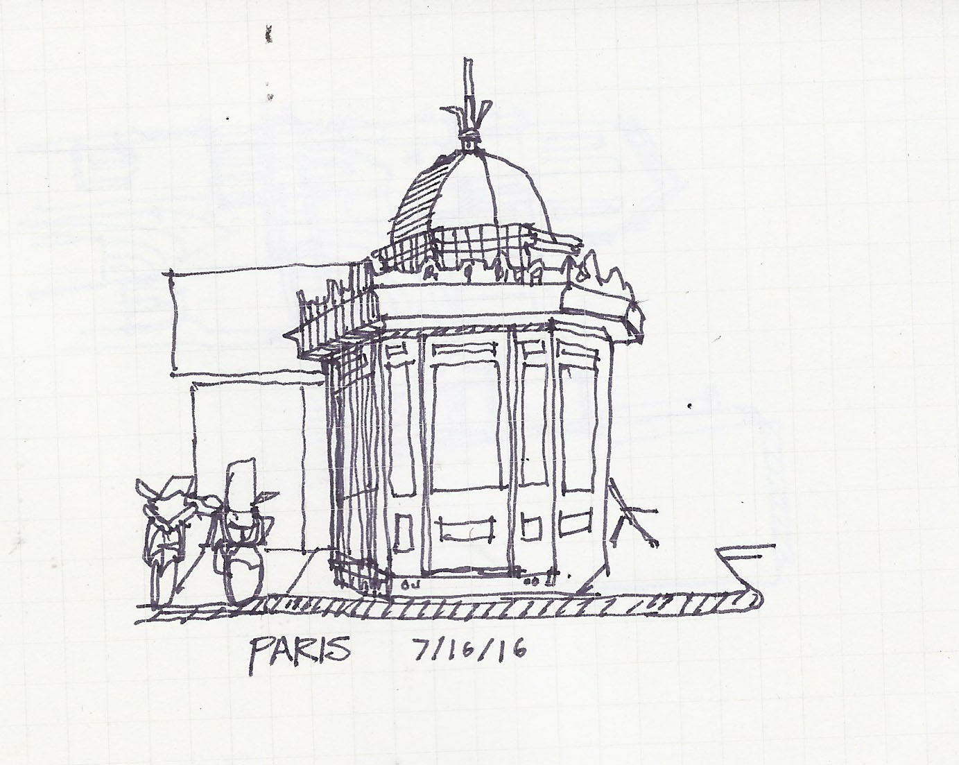 Pen drawings and watercolor paintings from around the world. This travelogue includes scenes from Italy, France, Luxembourg, and the United States.